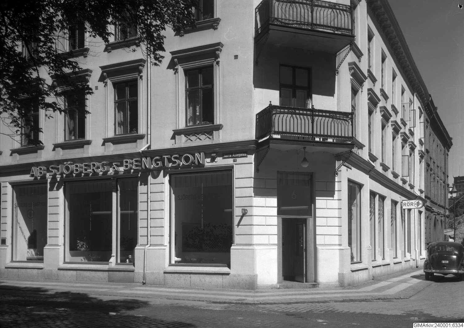 Förvarad i kuvert med texten: "Utställning, butik?, exteriör, Sjöberg & Bengtsson, låg löst i asken"