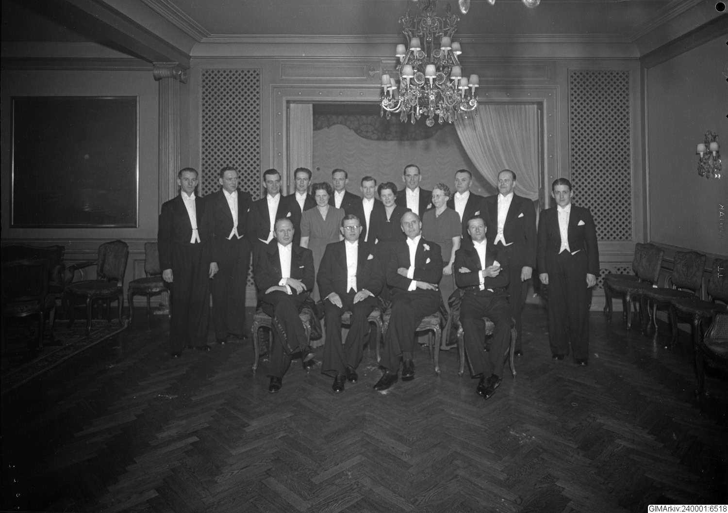 Förvarad i kuvert med texten: "Gruppbild, fest, Sjöberg & Bengtsson"