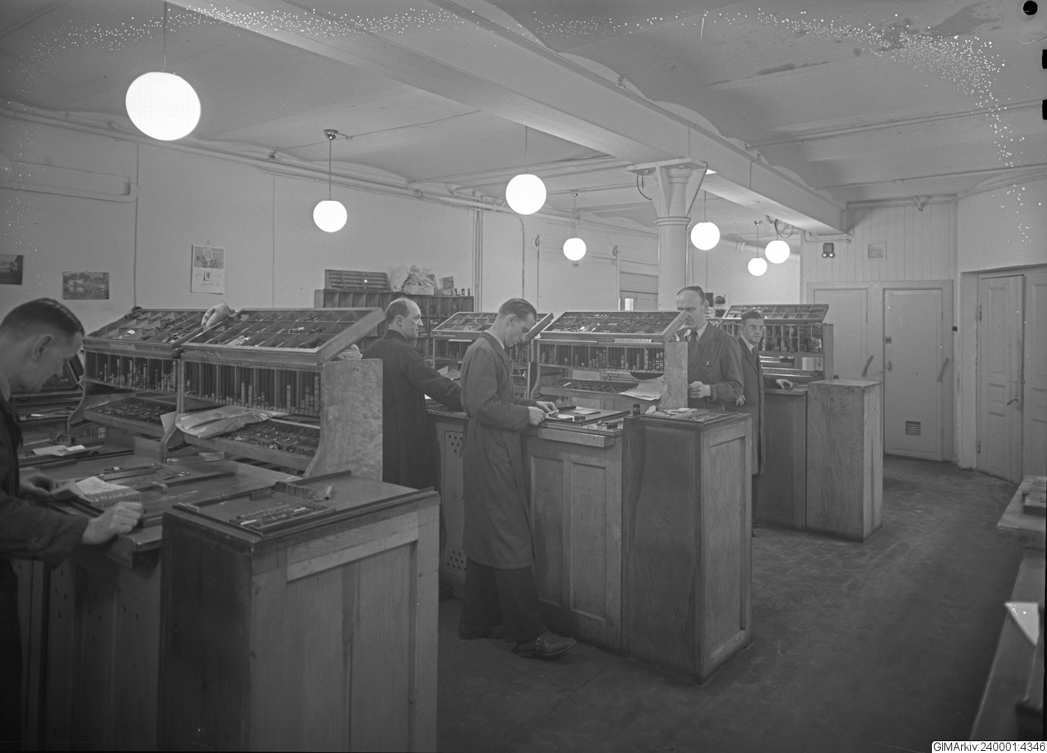 Förvarad i kuvert med texten: "Elanders Boktryckeri. Interiör. Dec. 1945"