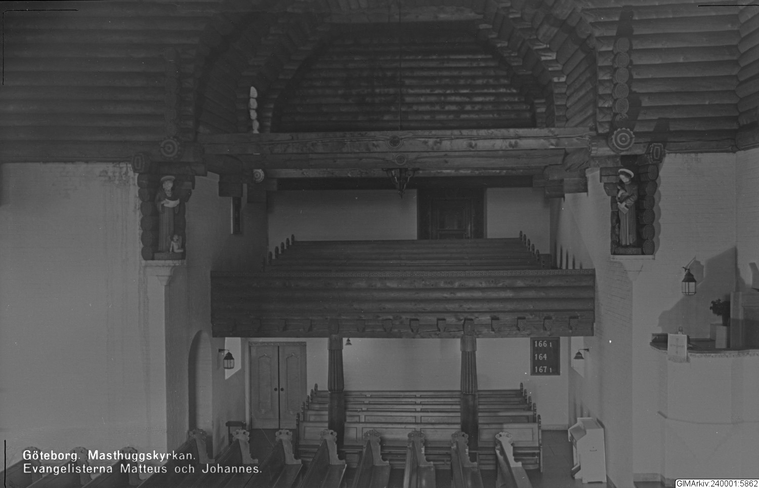 Förvarad i kuvert med texten: "Göteborgs Kyrkor och Kyrkorum. Div. Masthuggskyrkan. Evangelisterna Mattueus och Johannes"