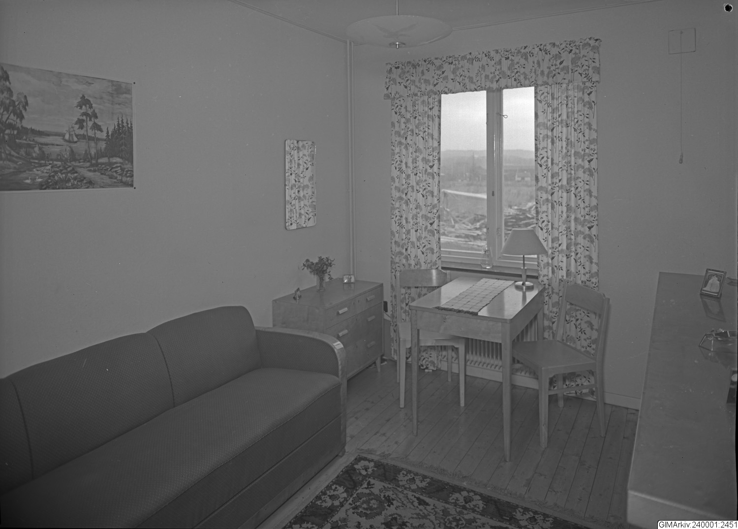 Förvarad i kuvert med texten: "Heminteriör. Låg löst i asken märkt "Nr. 7318-7402"."