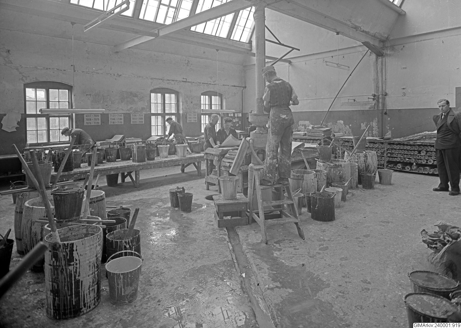 Förvarad i kuvert med texten: "Tapetfabrik. interiör. Dahlanders Tapetfab.