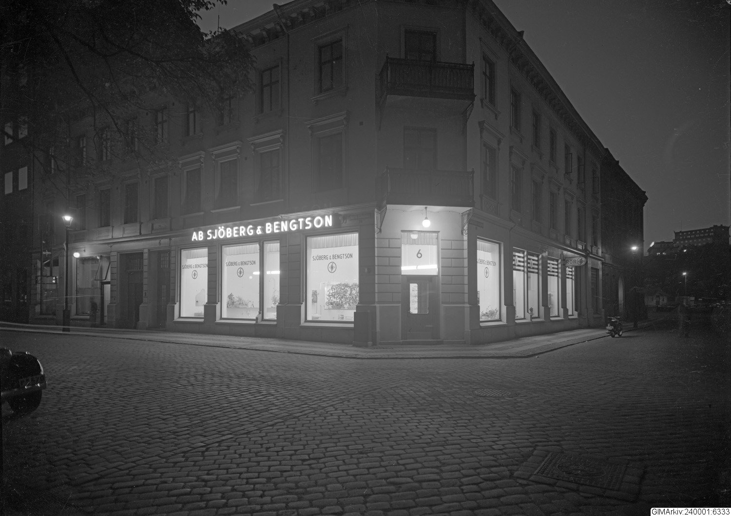 Förvarad i kuvert med texten: "Utställning, butik?, exteriör, Sjöberg & Bengtsson, låg löst i asken"