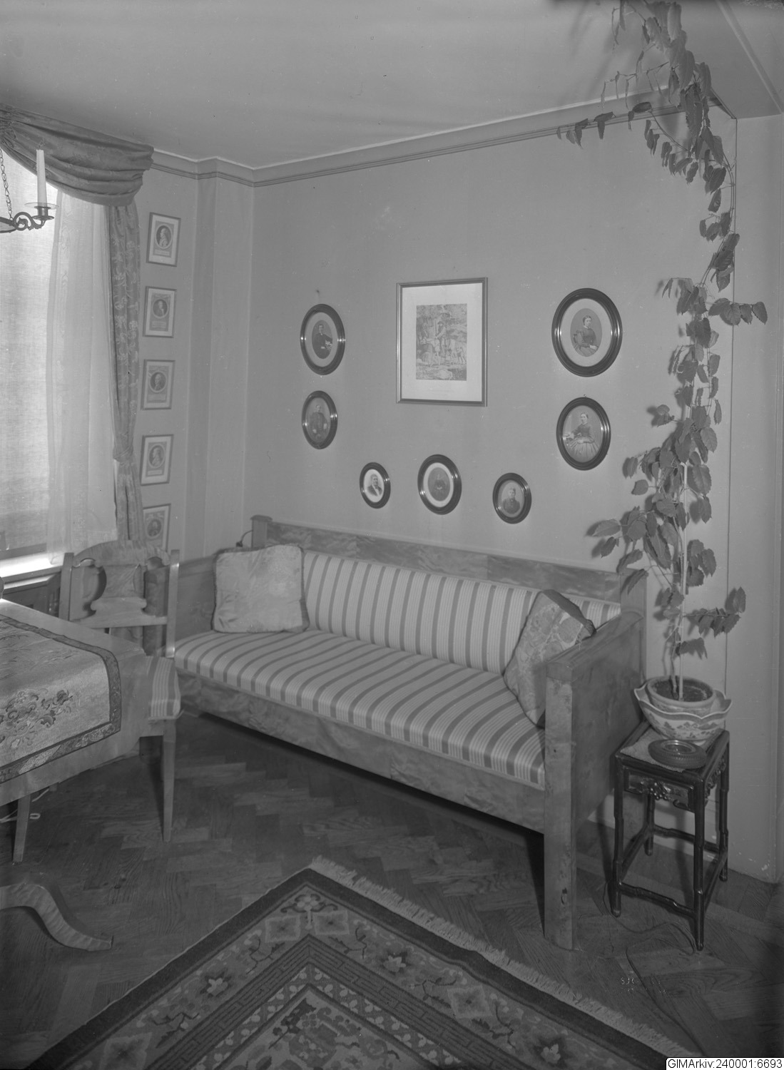 Beskrivning: Förvarad i kuvert med texten: "Heminteriör, Dir. Gedda, Långedrag"