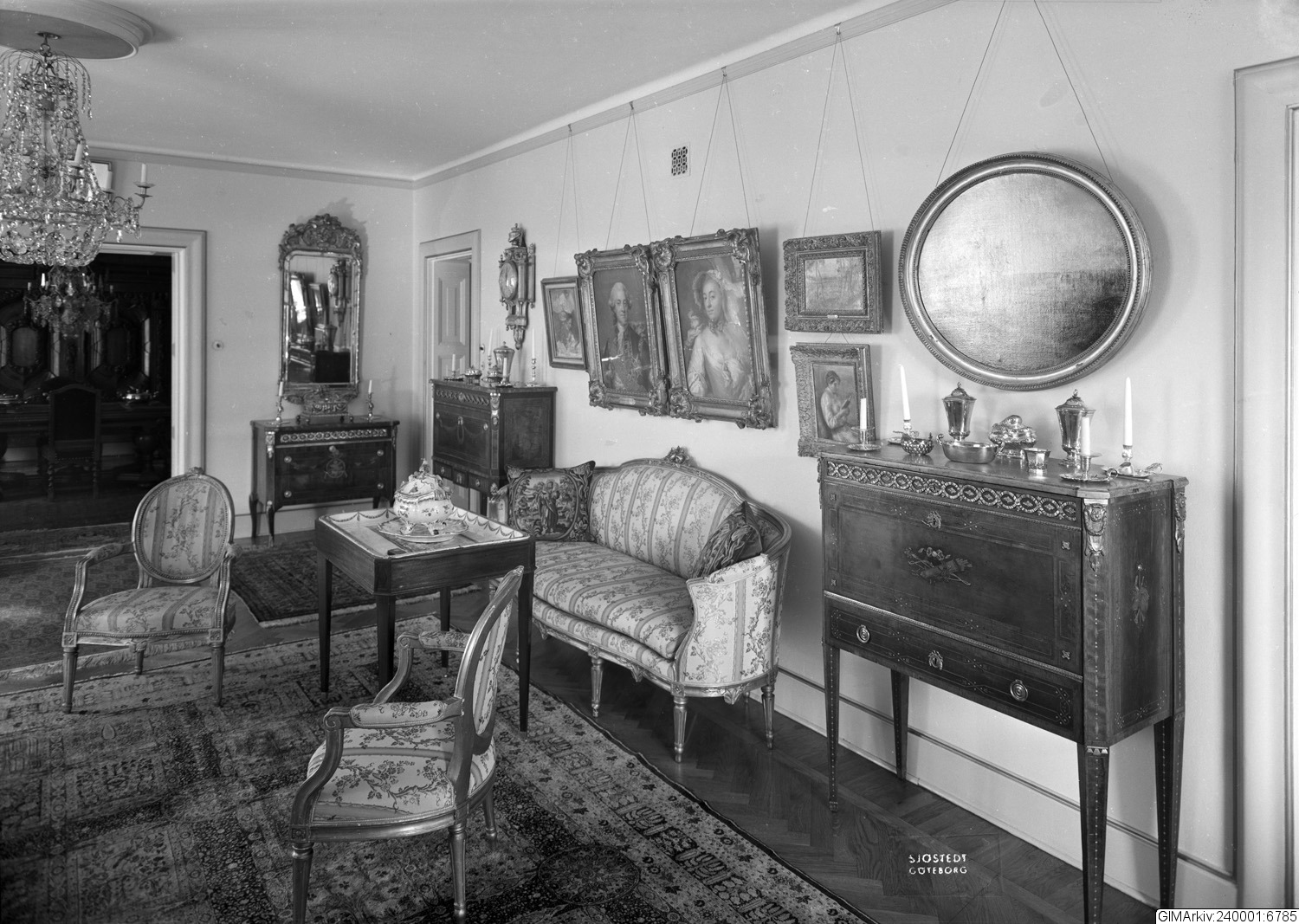 Beskrivning: Förvarad i kuvert med texten: "Heminteriör, Dir. Falk Simon"