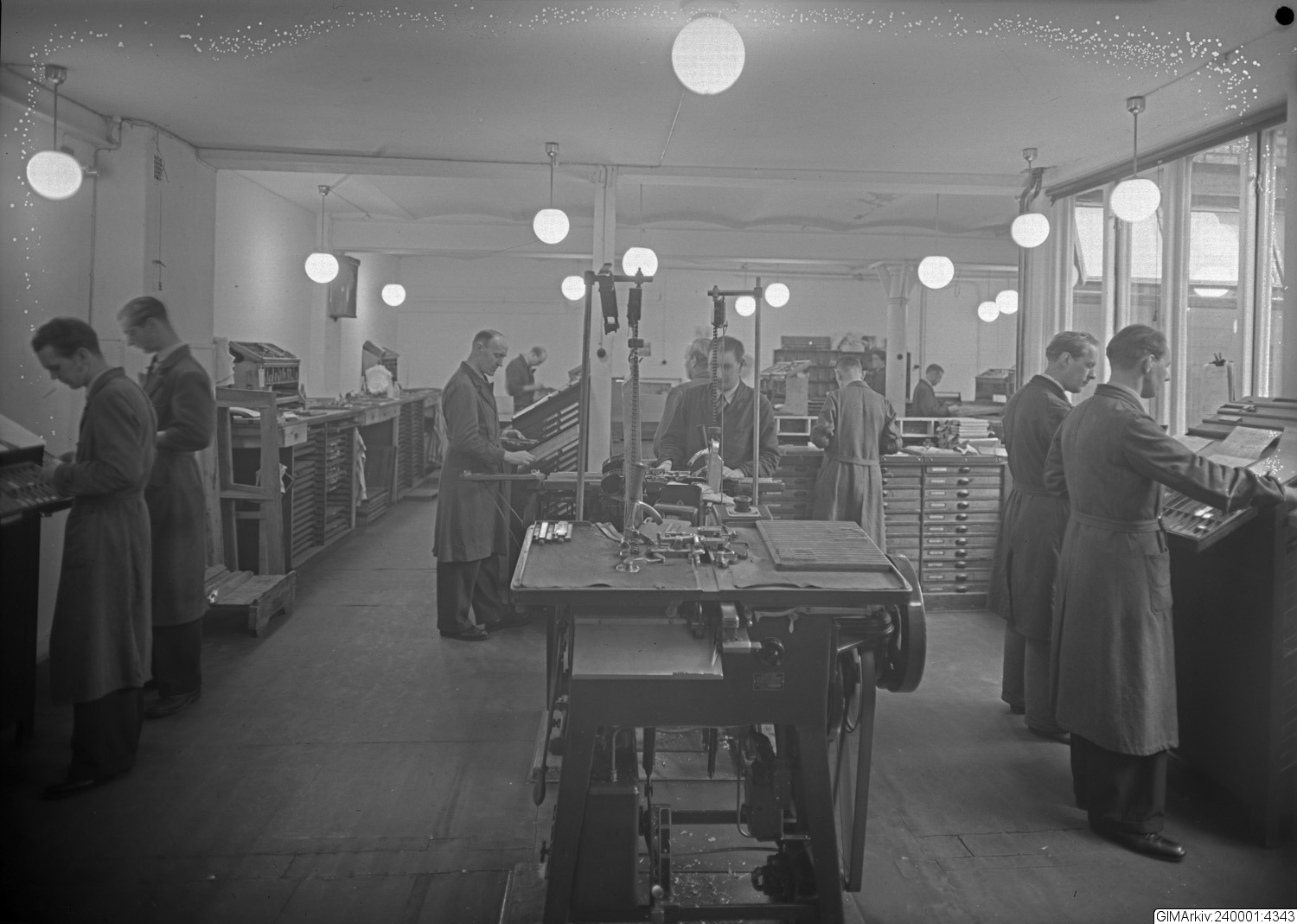Beskrivning: Förvarad i kuvert med texten: "Elanders Boktryckeri. Interiör. Dec. 1945"