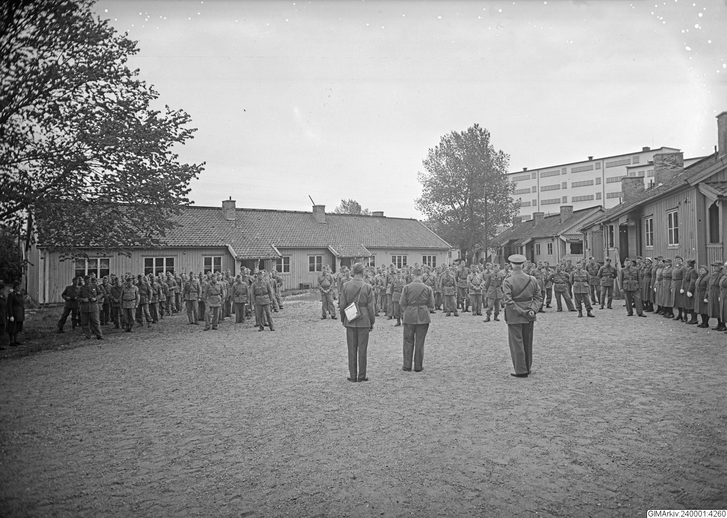 Förvarad i kuvert med texten: "V. Hemvärnet. Alla på gården. 1945"