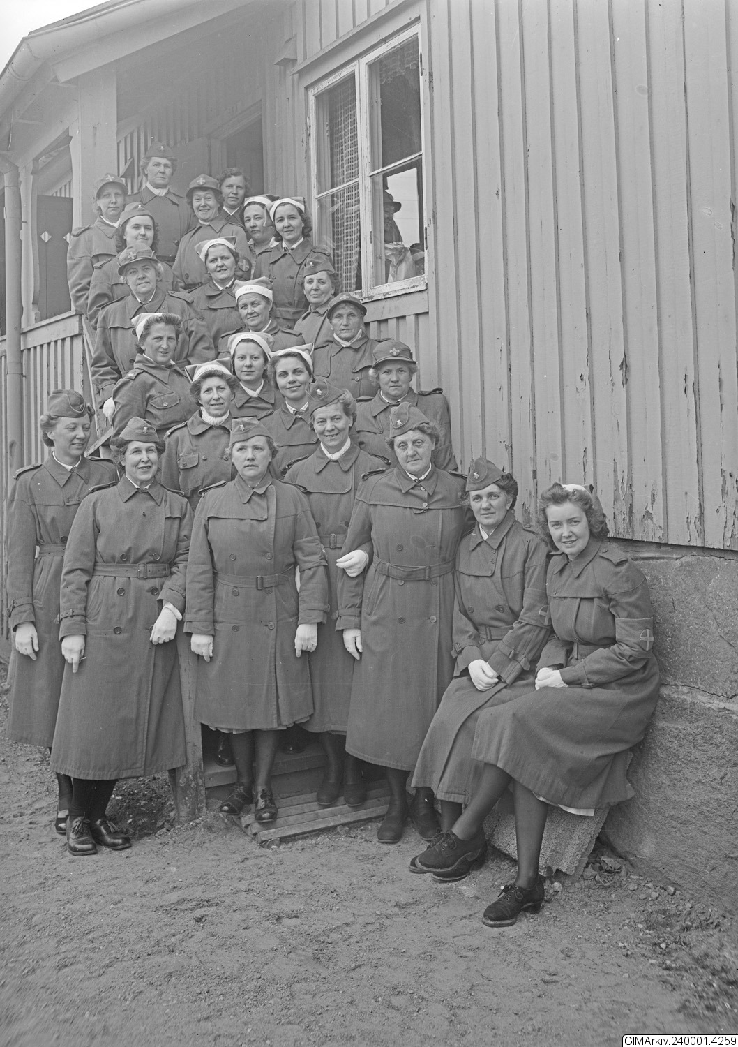 Förvarad i kuvert med texten: "V. Hemvärnet. Kvinnorna. 1945"