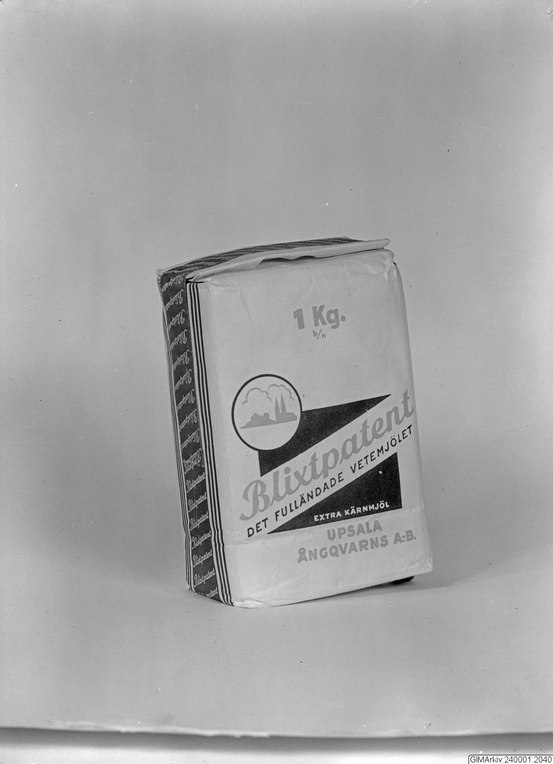 Förvarad i kuvert med texten: "Paket med vetemjöl, 1kg. Upsala Ångqvarns AB. 3375 på neg."