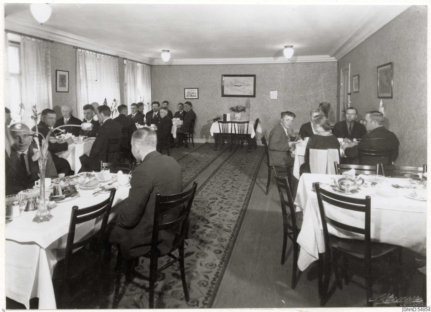 Svartvitt foto, Interiör från matsalen Hotell Hembygden