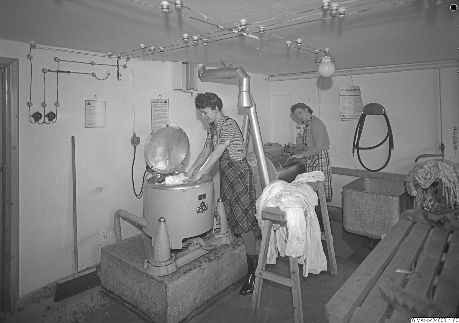 Bild i Sven Sjöstedts samling. Förvarad i kuvert med texten: "HSB, Hildur och Vera i tvättstugan"