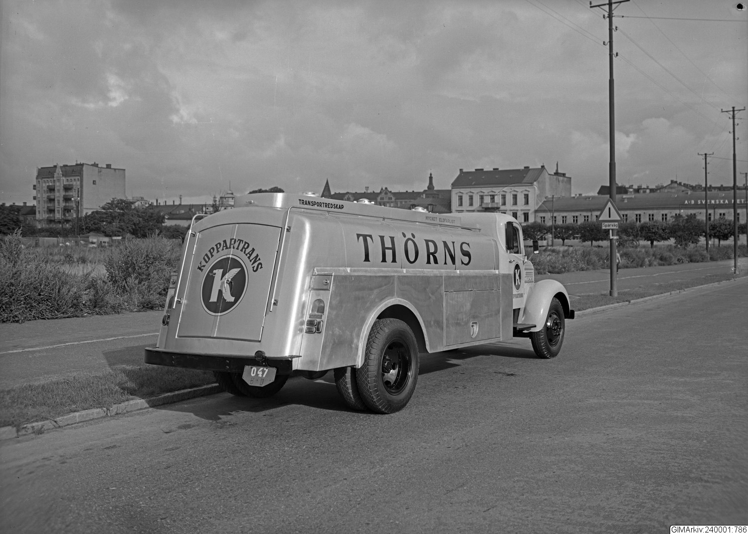 Förvarad i kuvert med texten: "Tankbil Thörns koppartrans. Juni 1955 el. Juni 1958 Bild 1 .