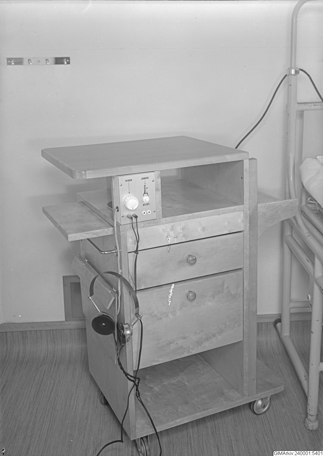 Förvarad i kuvert med texten: "AEG. Sjukhussängbord m. larm & Radio"