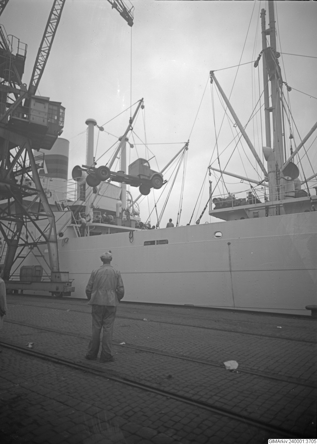 Förvarad i kuvert med texten: "Lastning av lastbil på båt. Scania Vabis. Södertälje"
