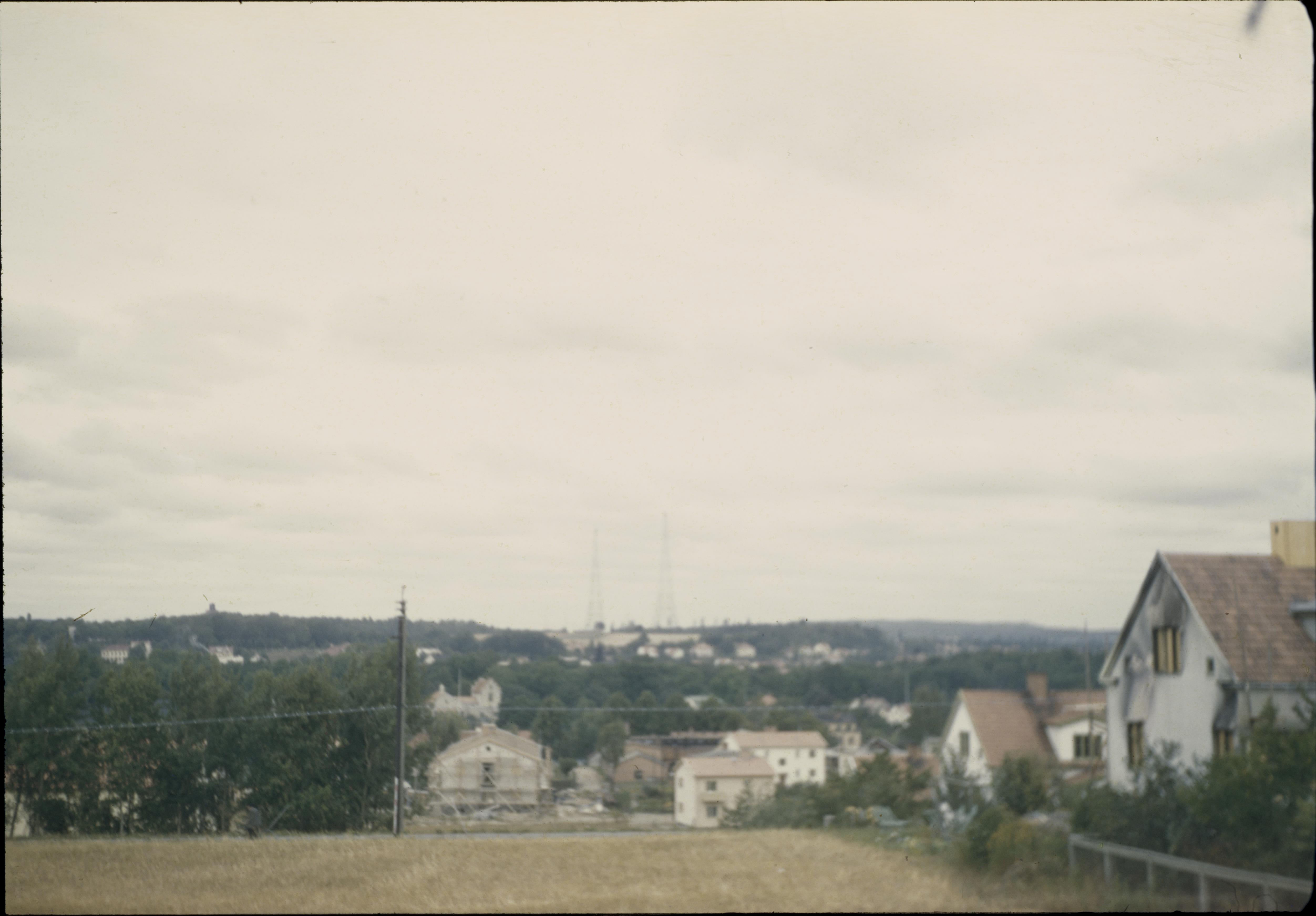Vy över Motala. Lägg märke till att huset till höger eldhärjats.