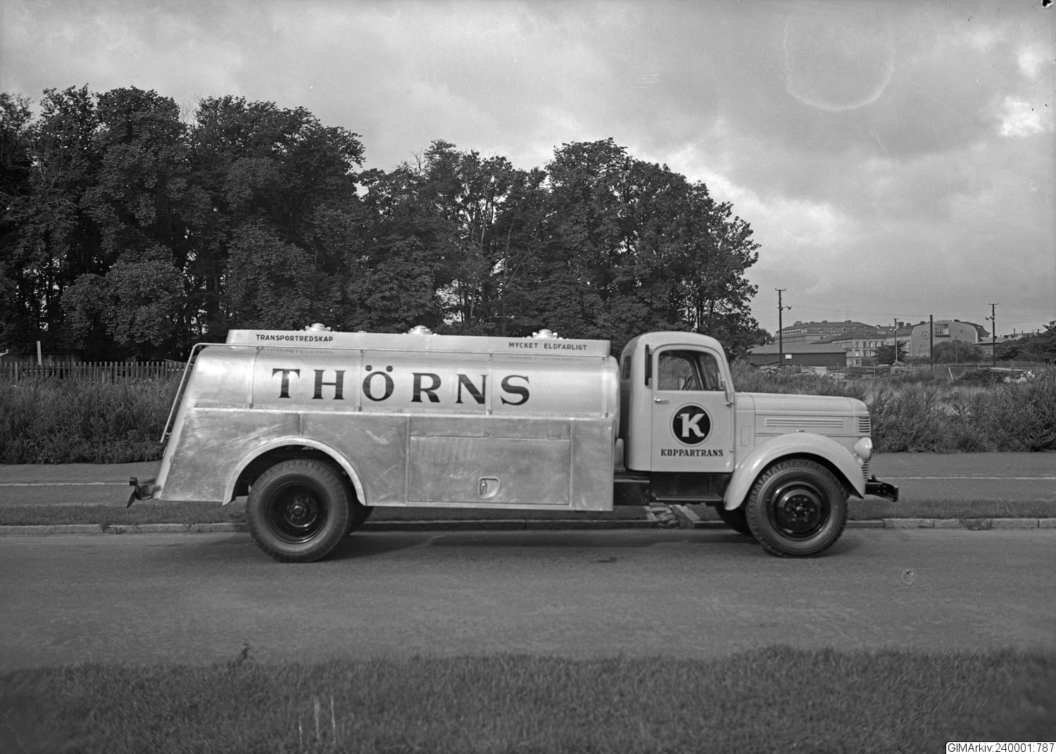 Förvarad i kuvert med texten: "Tankbil Thörns koppartrans. Juni 1955 el. Juni 1958 Bild 2.