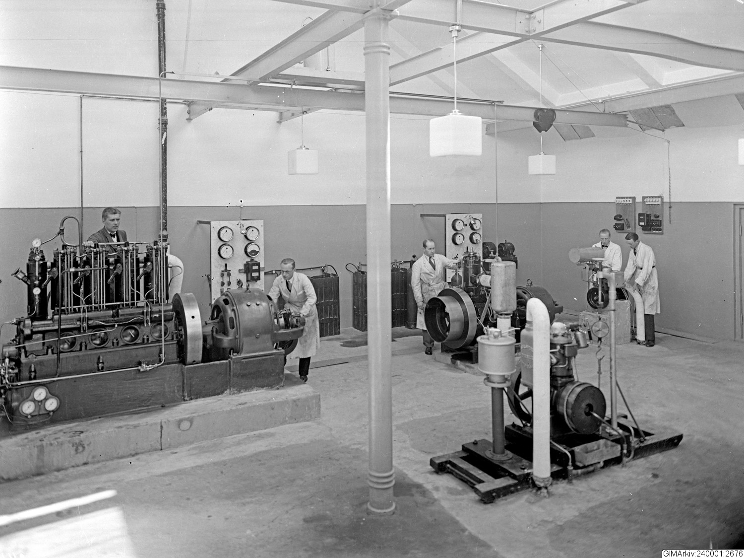 Förvarad i kuvert med texten: "Företag ? Maskinsal. Herrar i rockar. Råoljemotor. tändhulemotor. Chalmers maskinteknik ?"