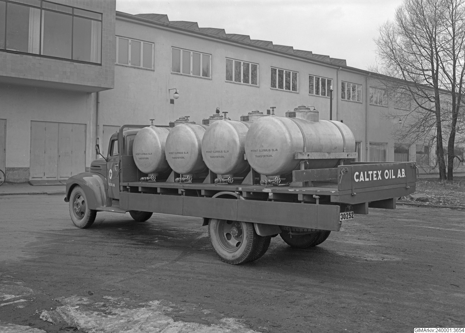 Beskrivning: Förvarad i kuvert med texten: "Lastbil med tankar. Caltex Oil AB. Gbg."