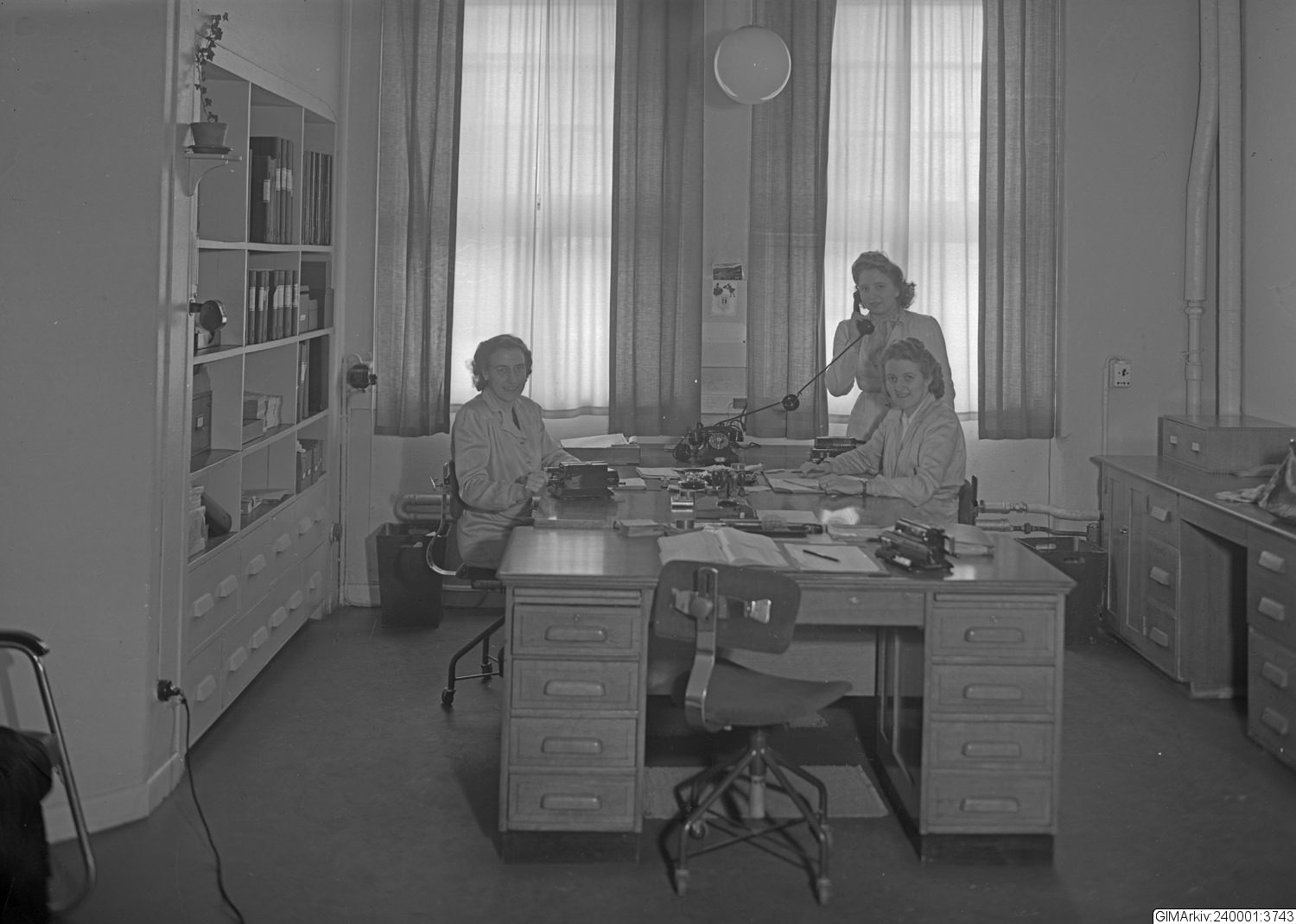 Förvarad i kuvert med texten: "Sv. Telegrambyrån. Kontor. Interiör. Konfektionsindustri. låg i ask tillsammans med bilder från konfektionsindustri."