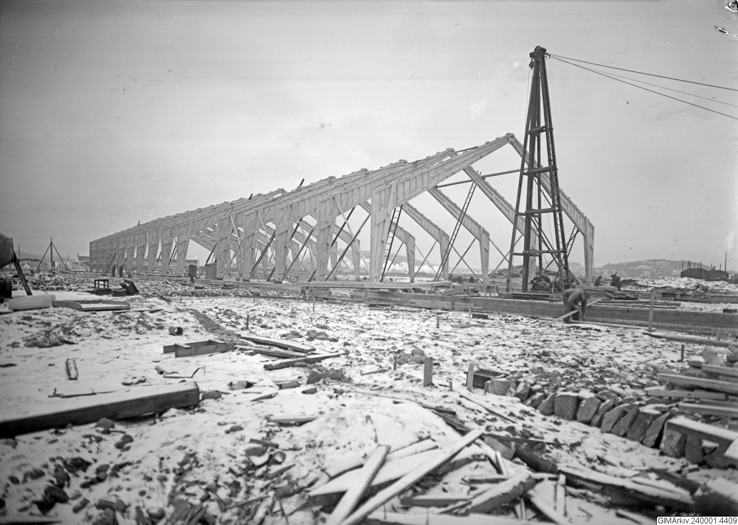 Förvarad i kuvert med texten: "Fribärande Träkonstruktioner. Töreboda. Febr. 1947. (5497)"