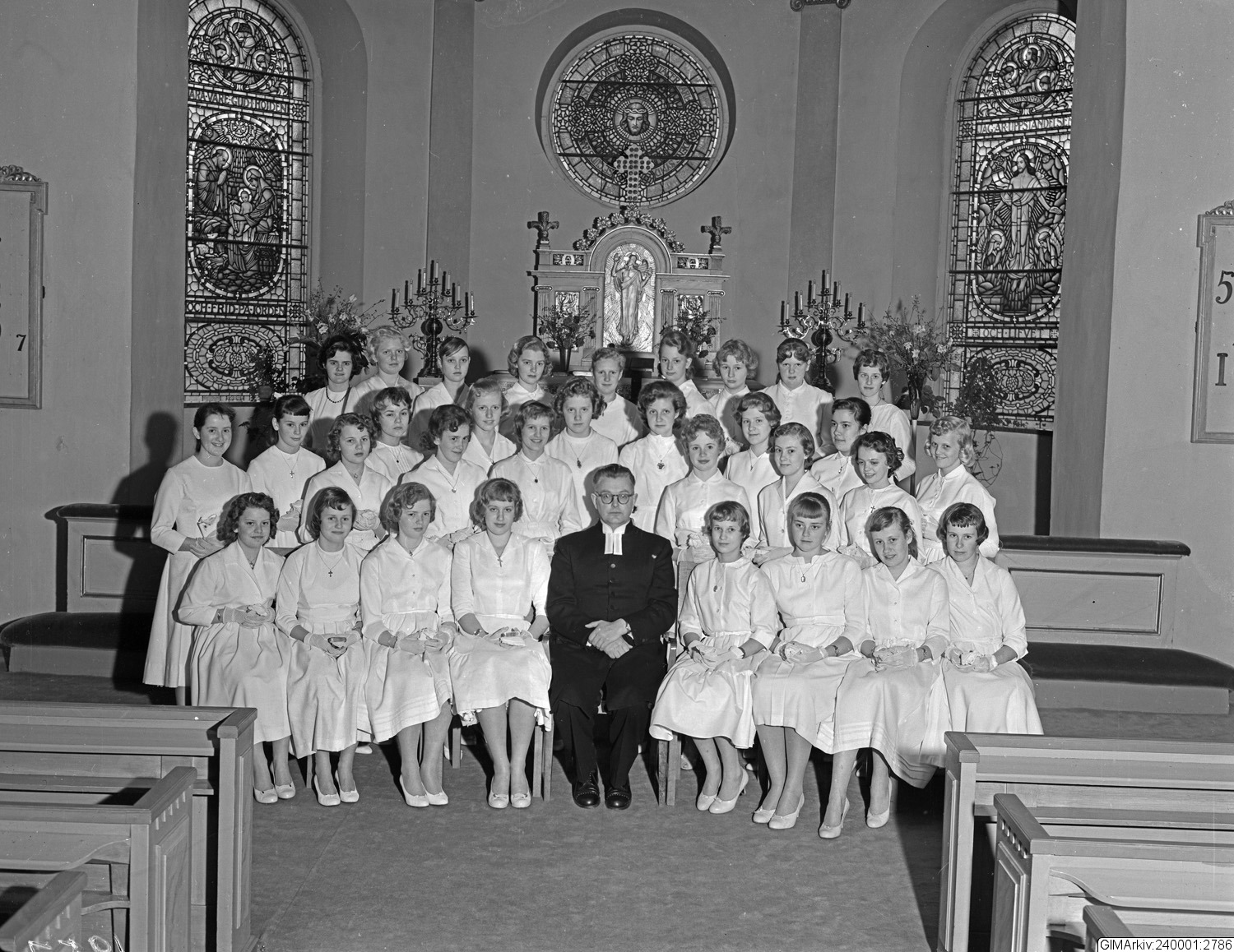 Förvarad i kuvert med texten: "Konfirmander. Olika församlingar. Karl Johans förs. Frizell. 1957"