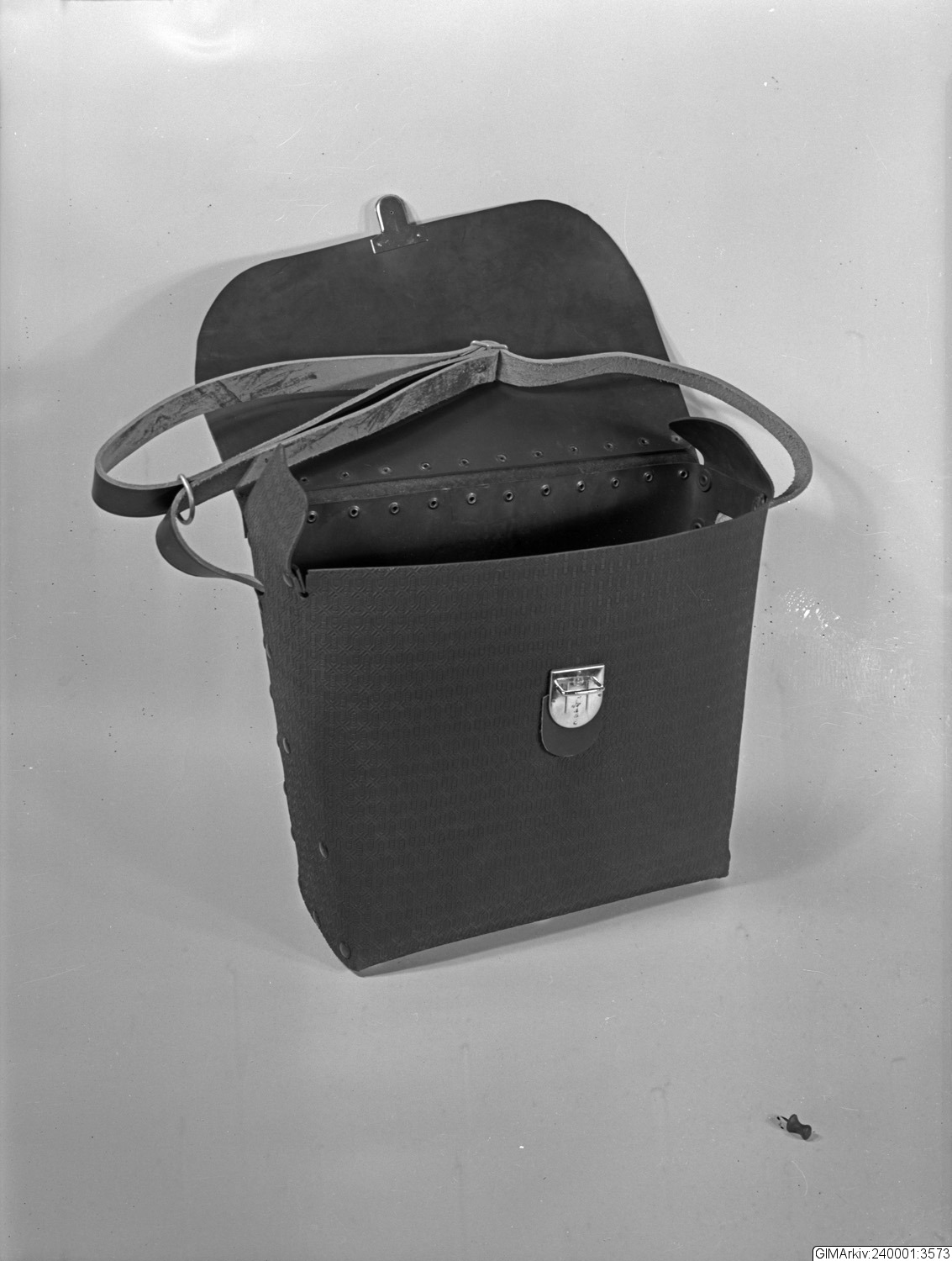 Förvarad i kuvert med texten: "Olika väskor. AB Hängredskap. Hör dessa till AB hängredskap? Låg i samma kuvert"