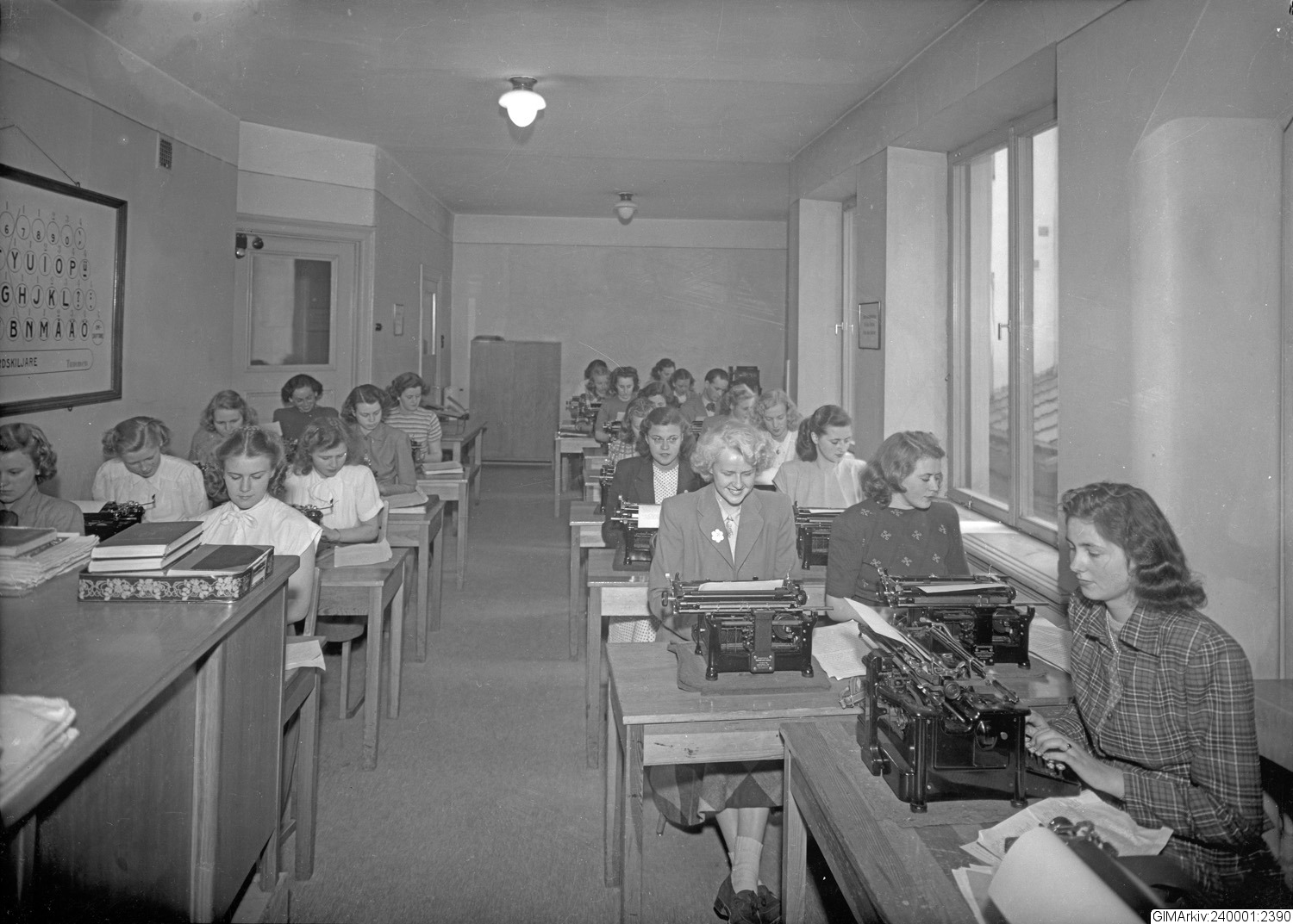Förvarad i kuvert med texten: "Interiör. Filip Holmqvists Handelsinstitut. Maj-49. 7378 på kuvert."