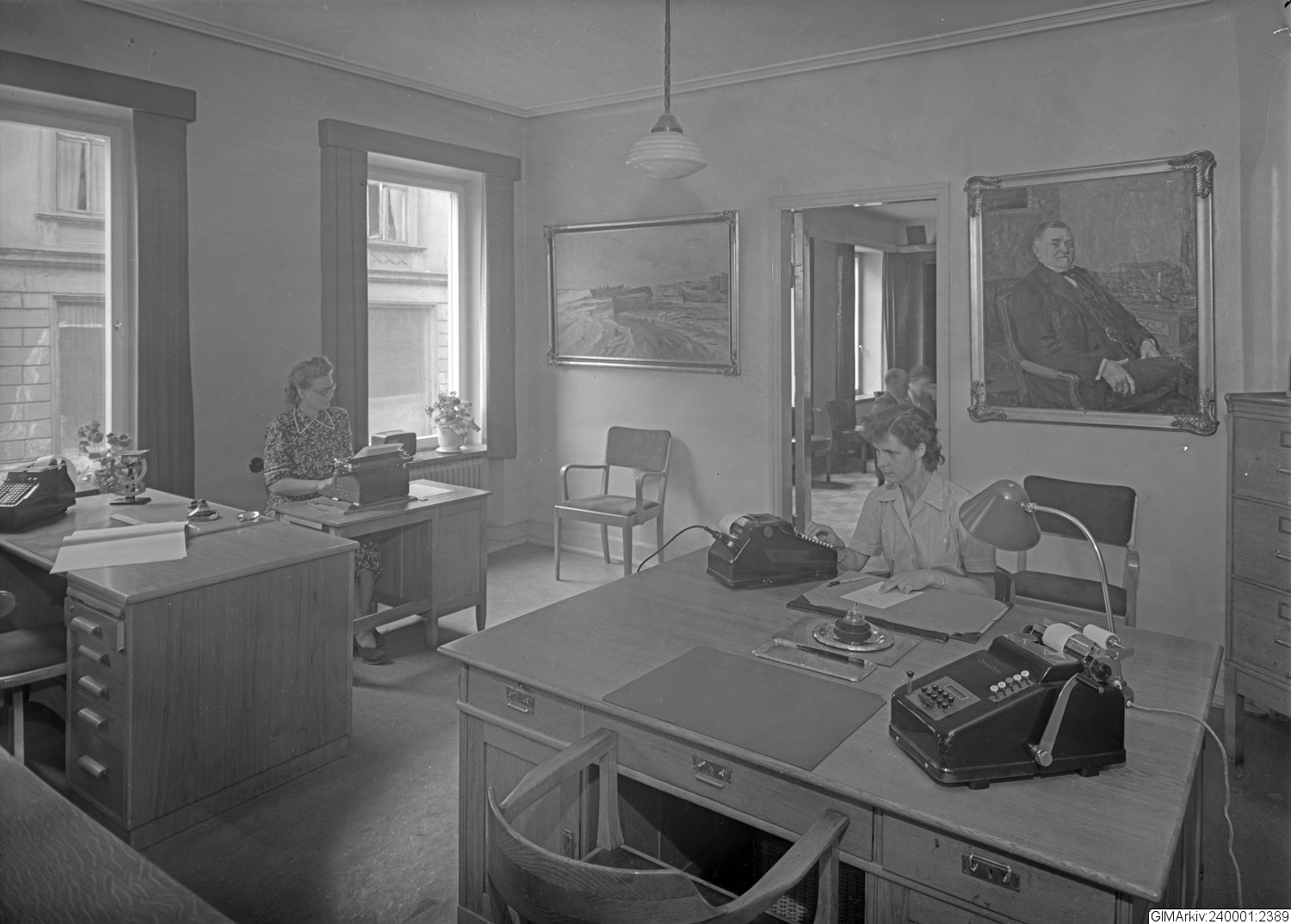 Beskrivning: Förvarad i kuvert med texten: "Interiör. Filip Holmqvists Handelsinstitut. Maj-49. 7378 på kuvert."