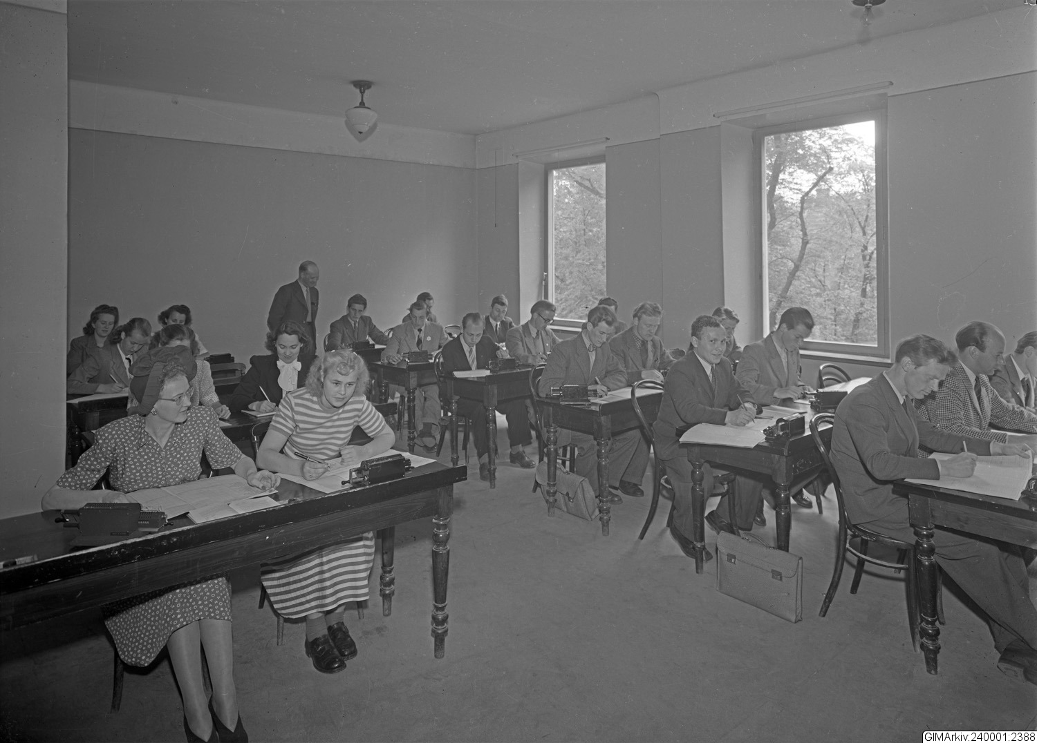 Förvarad i kuvert med texten: "Interiör. Filip Holmqvists Handelsinstitut. Maj-49. 7378 på kuvert."