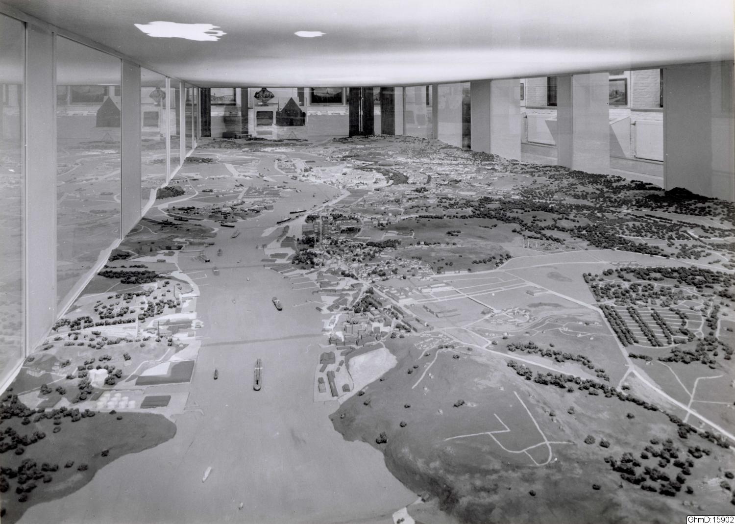 Svartvitt foto, Göteborgsmodellen från 1923 mot öster. Göteborgstopografiska samlingarna. Göteborgs Museum, Kronhuset.