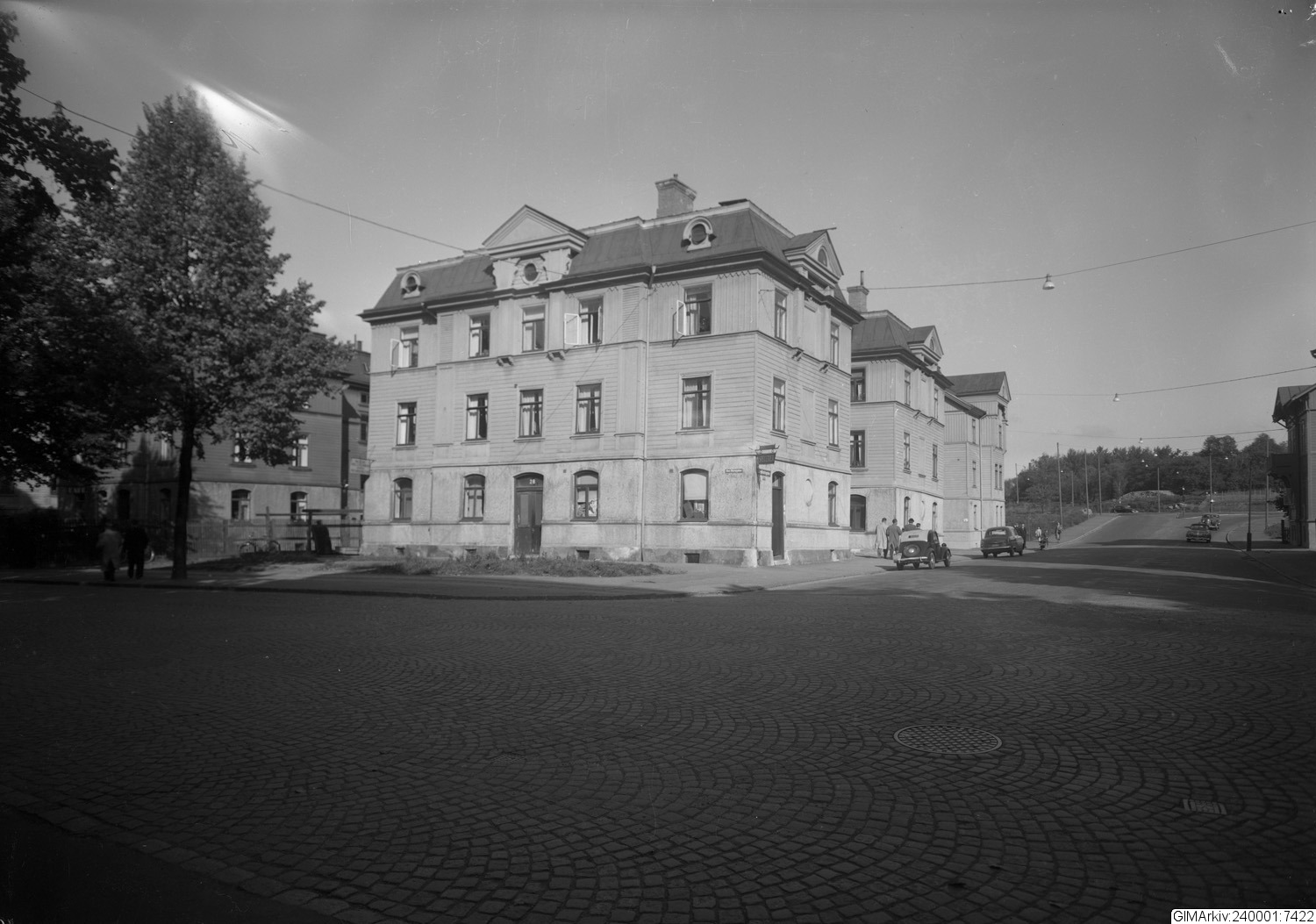 Förvarad i kuvert med texten: "Stadsmiljö, Dir. Bror Albrecktson, bl.a Sten Sturegatan, Engelbrektsgatan, Övre Husargatan, Skanstorget"