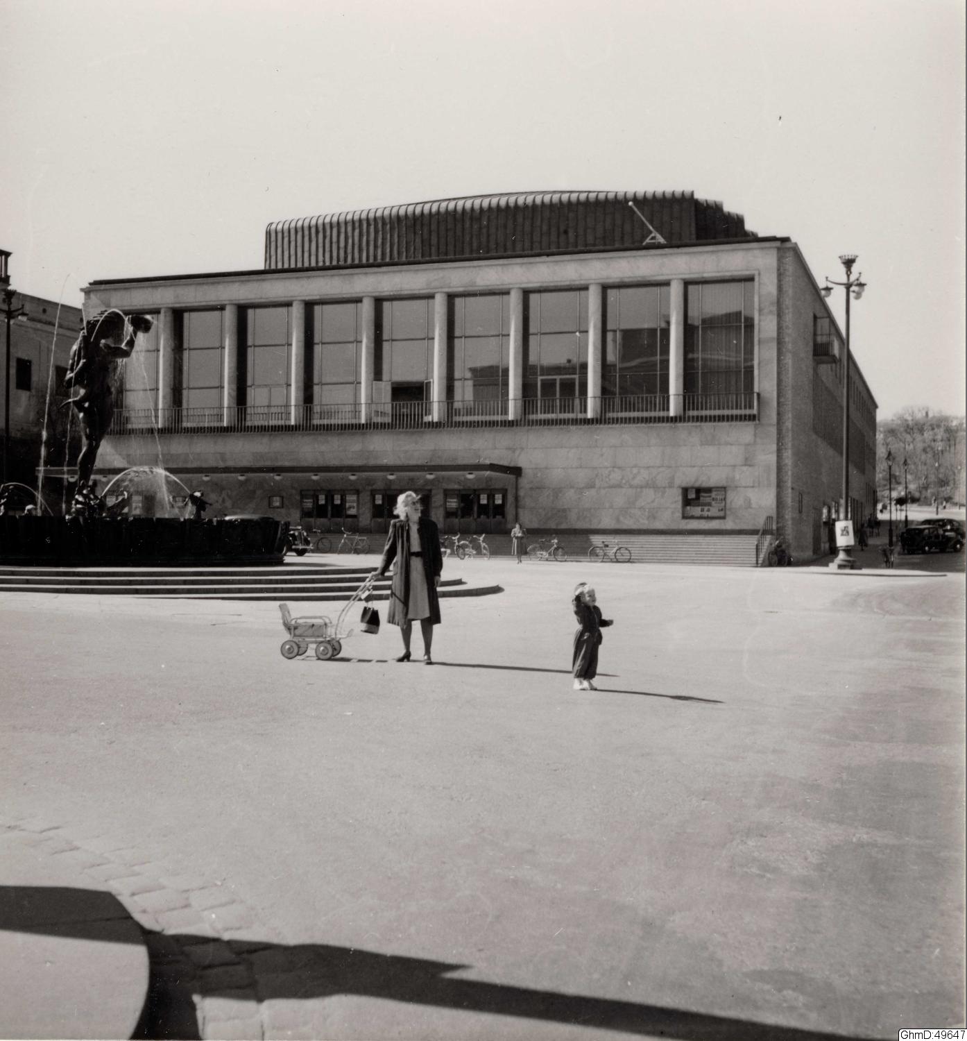 Svartvitt foto, Götaplatsen, Konserthuset. Foto framtaget inför arbetet med boken "En bok om Göteborg" utg. av Wezäta (1948).