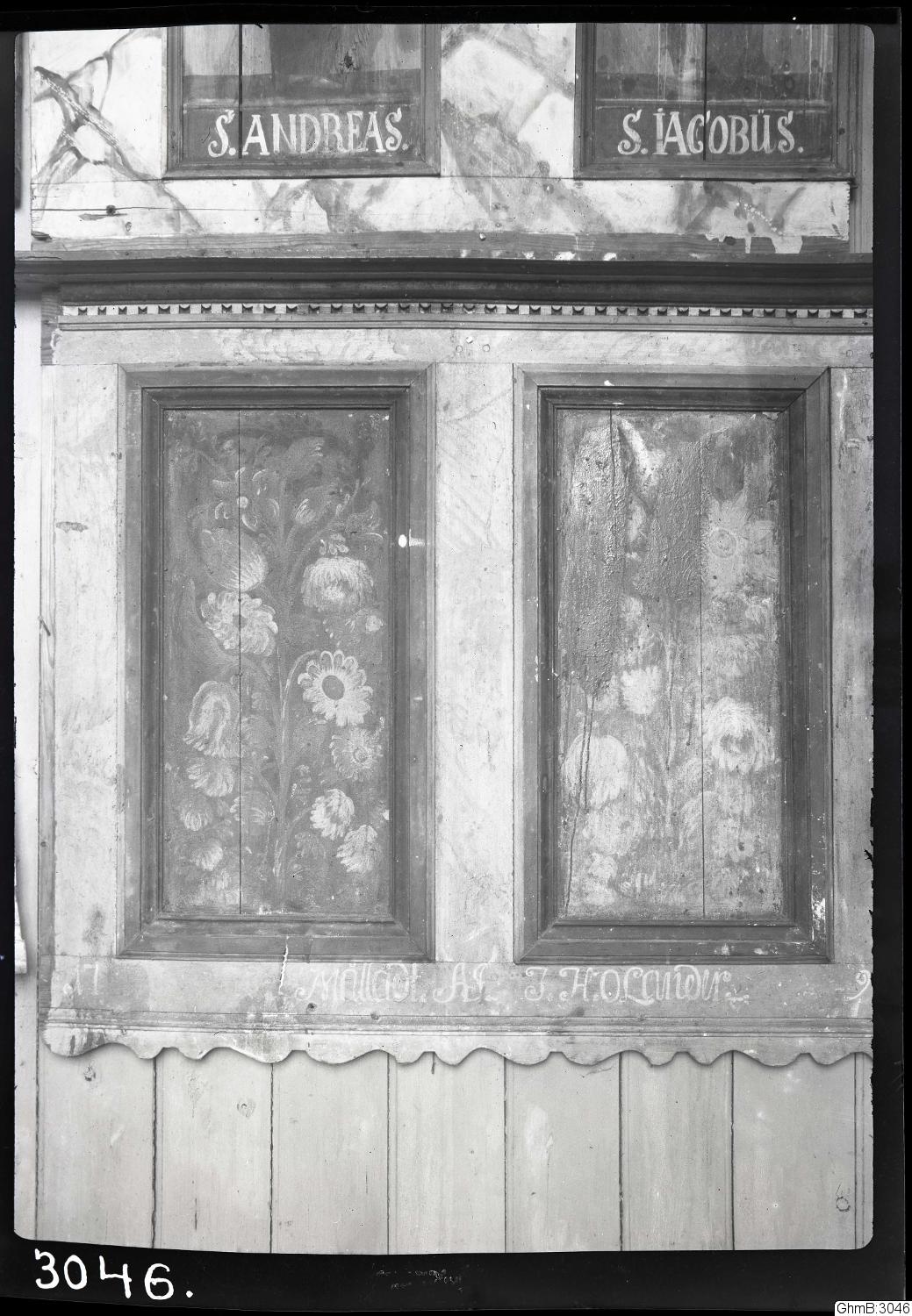 Svartvitt foto. Läktarbröst, kyrkan i Möllösund