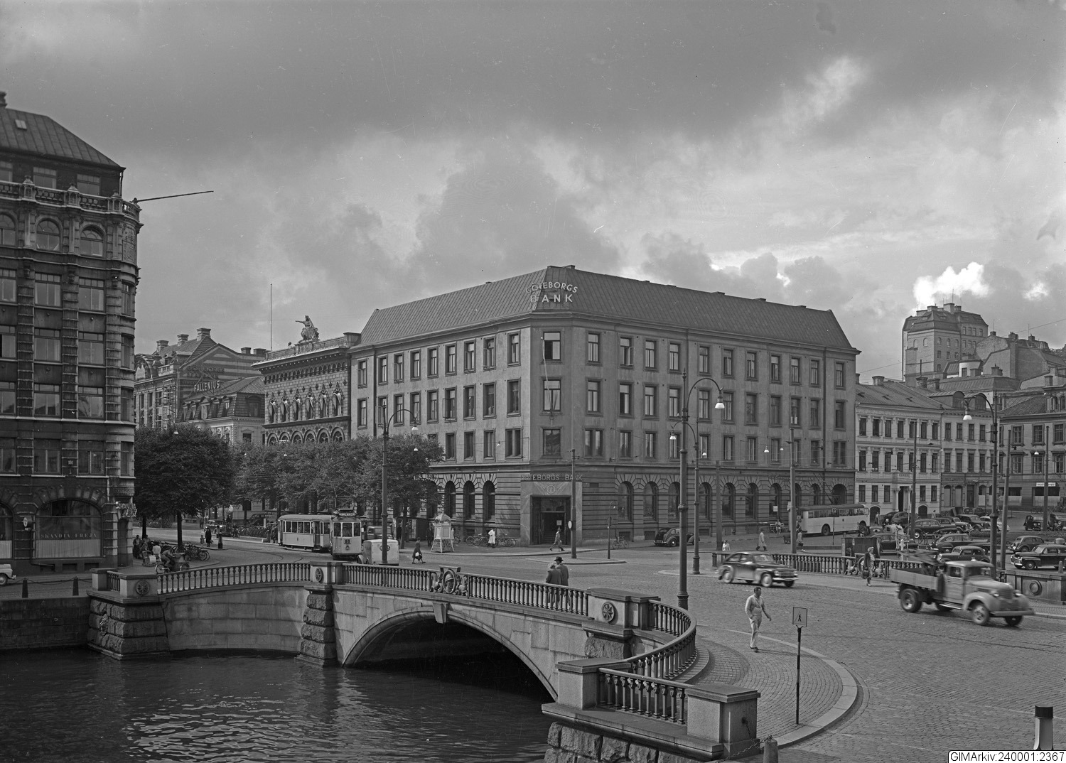 Beskrivning: Förvarad i kuvert med texten: "Stadsmiljö. S. Hamng x V. Hamng. Byggmäst. Lars Hansson. Ing. Harry Hansson. Aug-48."