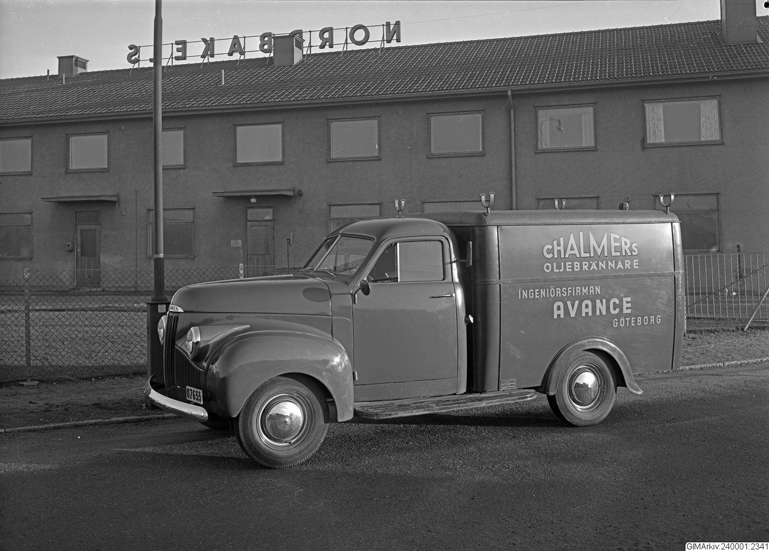 Förvarad i kuvert med texten: "Skåpbil 07655. Motorf. Avance. Jan-49. Info: Ingeniörsfirman Avance Göteborg. Chalmers oljebrännare. Quiet Automatic oljebrännare."