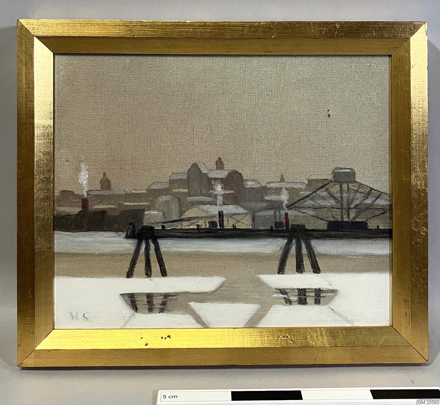 Gamla Hisingsbron sedd från Hisingssidan, på andra sidan Göta älv syns Kvarnberget