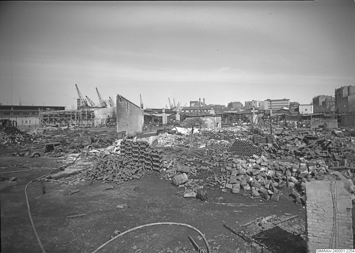 Förvarad i kuvert med texten: "Brandplats. "brända tomten"? Lars Forselius. Info: skylt med Söderberg & Bengtsson. Kan ev vara Järntorget el. Masthugget. 1:a Långgatan. Kv- Barkassen brann 1935."