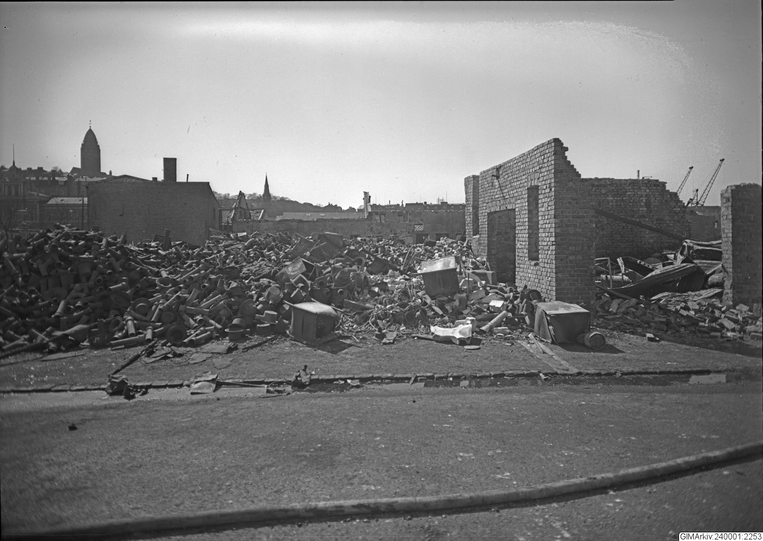 Förvarad i kuvert med texten: "Brandplats. "brända tomten"? Lars Forselius. Info: skylt med Söderberg & Bengtsson. Kan ev vara Järntorget el. Masthugget. 1:a Långgatan. Kv- Barkassen brann 1935."