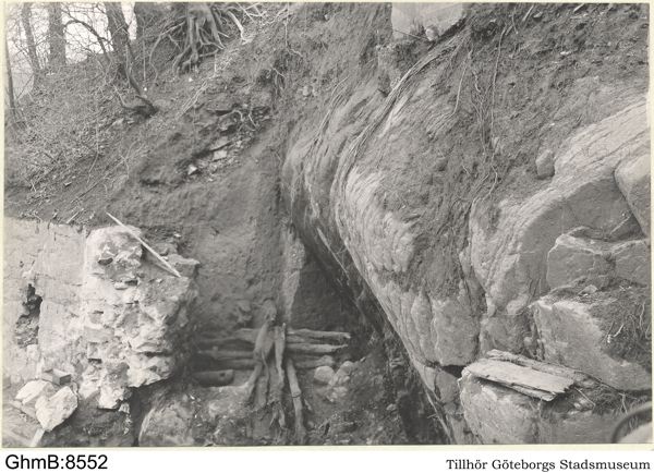 Stockverksklippan , den avbanta bastionsmuren och däremellan stockkonstruktionen. Sedda från bröstvärnsbastionen (fr. NO).