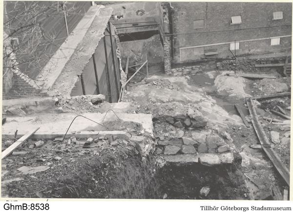 Bröstvärnsmurens krön sett från klippan och stockverket. ( fr V)