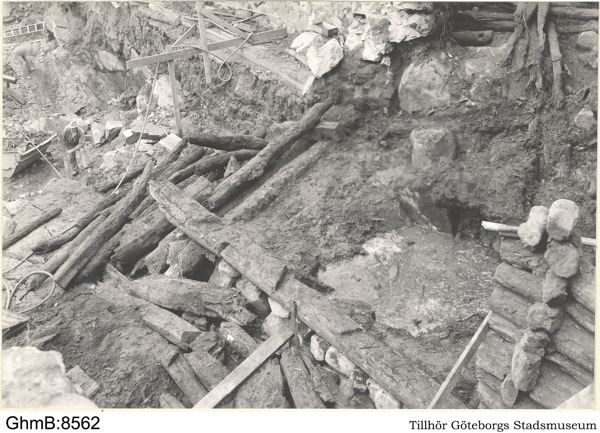 Stockverkets bottenlager med östra väggens syll längst åt h väggens sparade norra del.