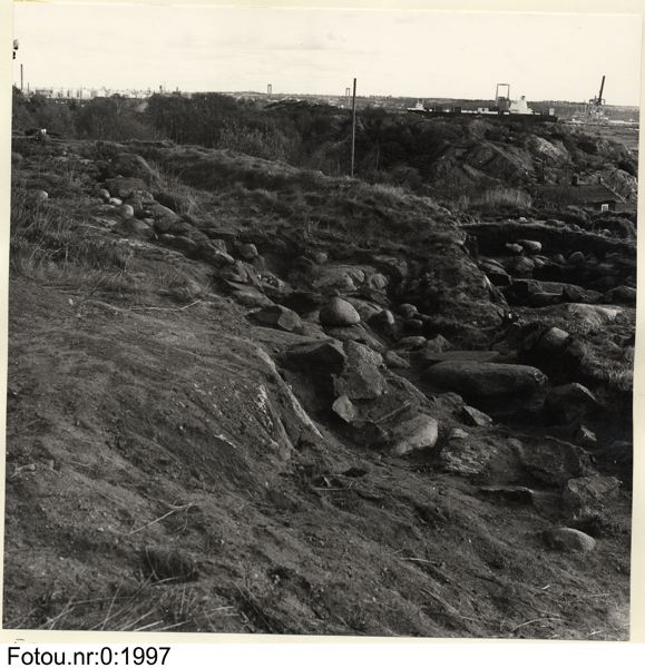 Område H efter avslutad under sökning. Till vänster syns stensträngen i den gamlöa ägogränsen, till höger i förgrunden norra kanten av den kvadratiska stenpackningen. Från väster.