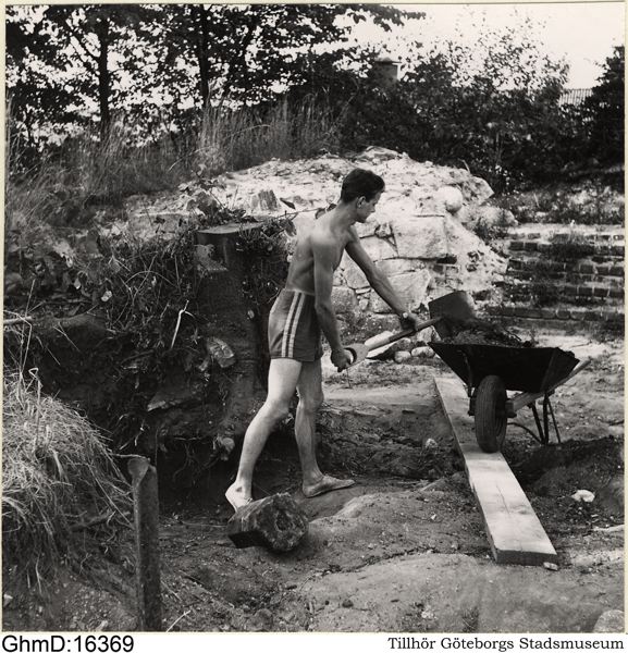 Gamla Älvsborg. Från sensommarens arbeten på fästningsområdet med "Högbergarna", far och son, i full aktion. Foto: A.N.