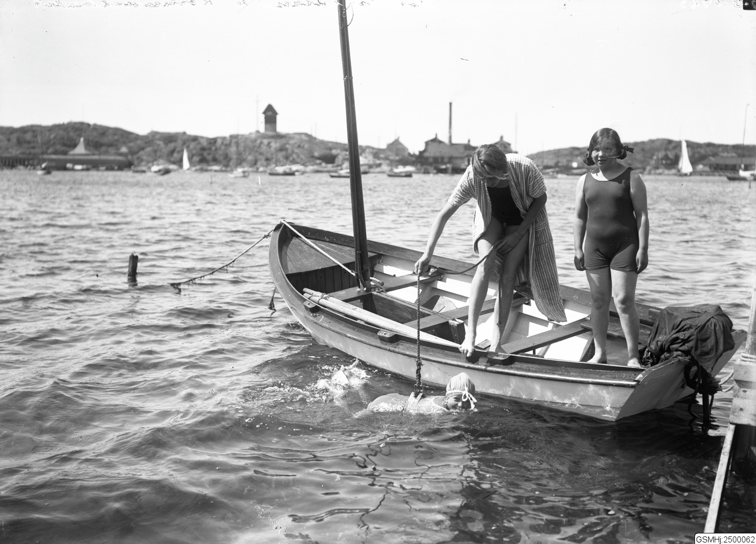 Den 26 juni 1925 publicerade Göteborgs-Tidningen en artikel om simundervisningen vid kommunalbadet i Fiskebäck. Dagen innan hade tidningens utsända besökt platsen under en strålande vacker dag, där klipporna sjöd av liv och människor som njöt av sina medhavda matsäckar. Den avgiftsfria simskolan var uppdelad i två avdelningar – en för pojkar och en för flickor. Pojkarna undervisades av Simsällskapets instruktör Stellan Ekstrand, medan flickorna fick lära sig simma av den välkända simmerskan Aina Berg. Båda instruktörerna betonade att barnen snabbt lärde sig att simma. Artikeln avslutades med en uppmaning till både vuxna och barn att ta chansen att lära sig simma.
