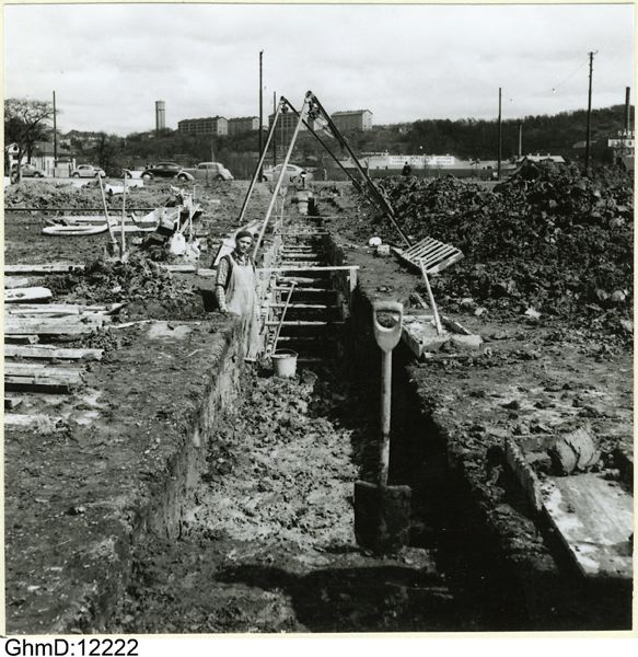 Den 5 maj 1954 gjordes ett skelettfynd i samband med grävning för avlopp i den blivande Slussgatan. Skelettet låg på 1,3 m:s dj. i nordväst-sydvästlig riktning. Fyndet gjordes 62 m. V om Skånegatan 30,5 m. S om Fattighusån såsom inritats på bif. sitationsplan. Skelettet var väl bevarat. Det låg i ryggläge med armarna lagde över bröstet. Sannolikt är det här fråga om en enstaka begravning. Intet mer skelettfynd har således gjorts under ovannämnda arbeten. Platsen ligger också så långt N om den gamla garnisonskyrkogården i Levgrens park, att samband mellan dem får anses uteslutet. Skelettet omhändertogs av Naturhistoriska museet, vilket efter vissa undersökningar kommer att ombesörja dess jordläggning. Historiska museet underrättades av Naturhistoriska först sedan skelettet tagits ur sitt läge, varför fotografierna endast visa platsen där fyndet gjordes med dem, som påträffade det, hrr Douglas Johansson och Gustav Nilsson.