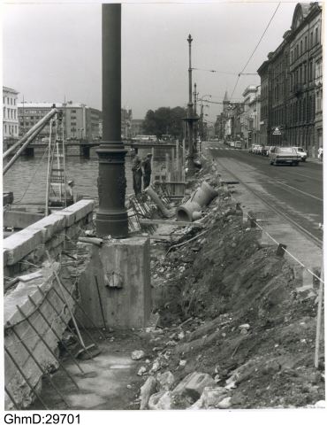 Förhöjning av Stora Hamnkanalens kajkant vid Kämpebron i samband med iordningställande av ny spårvagnshållplats. Gammal brunn anträffas därvid, uppmurad av kvader (otydbart) - och tegelsten.