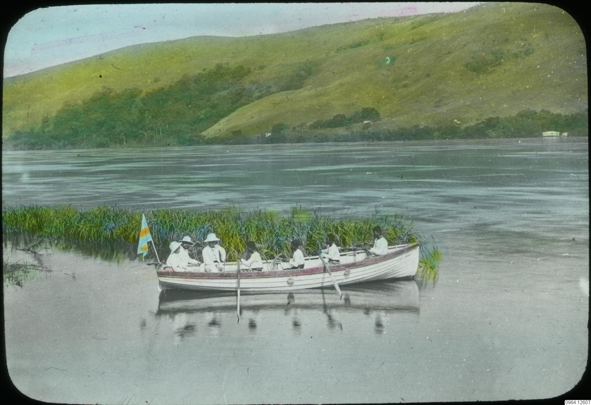 Roddbåt med svensk flagga på Kongofloden, Londe.