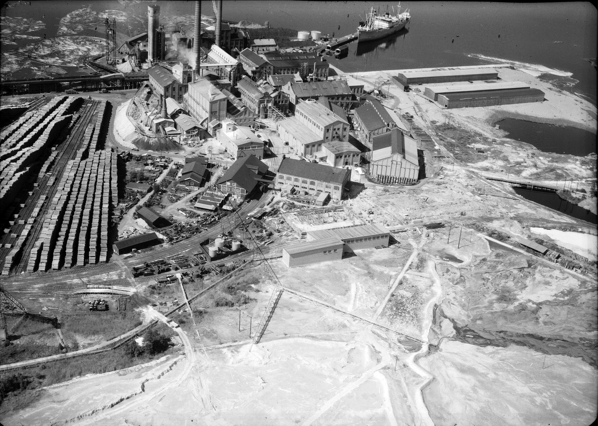 Titel: Karskär, Gästrikland Korsnäs AB. I Karskär uppfördes 1910 en sulfitfabrik och 1915 en sulfatfabrik. Sågen brann 1923 men ett nytt sågverk byggdes upp