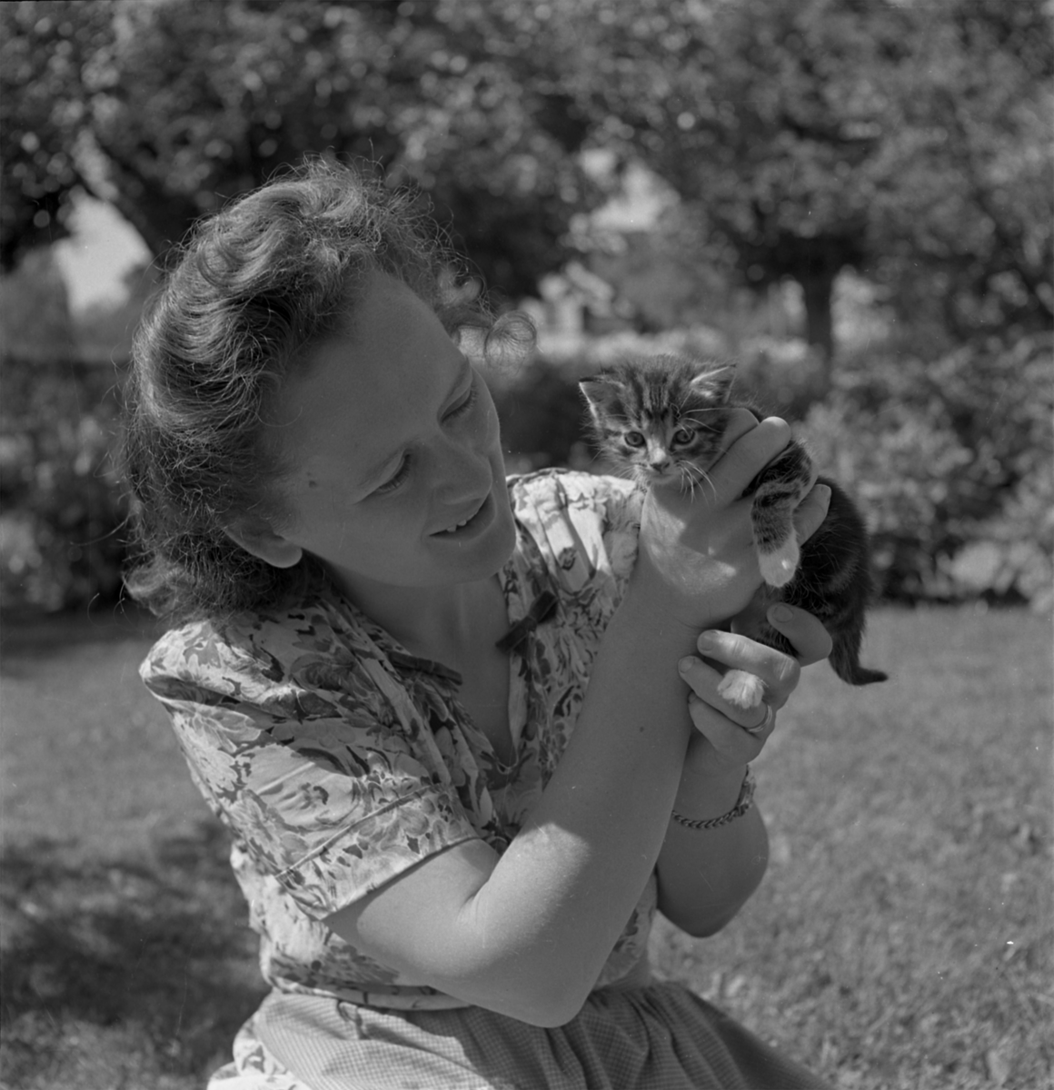 Kvinna med kattunge