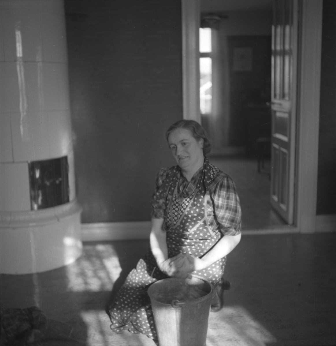 Kvinna med skurhink